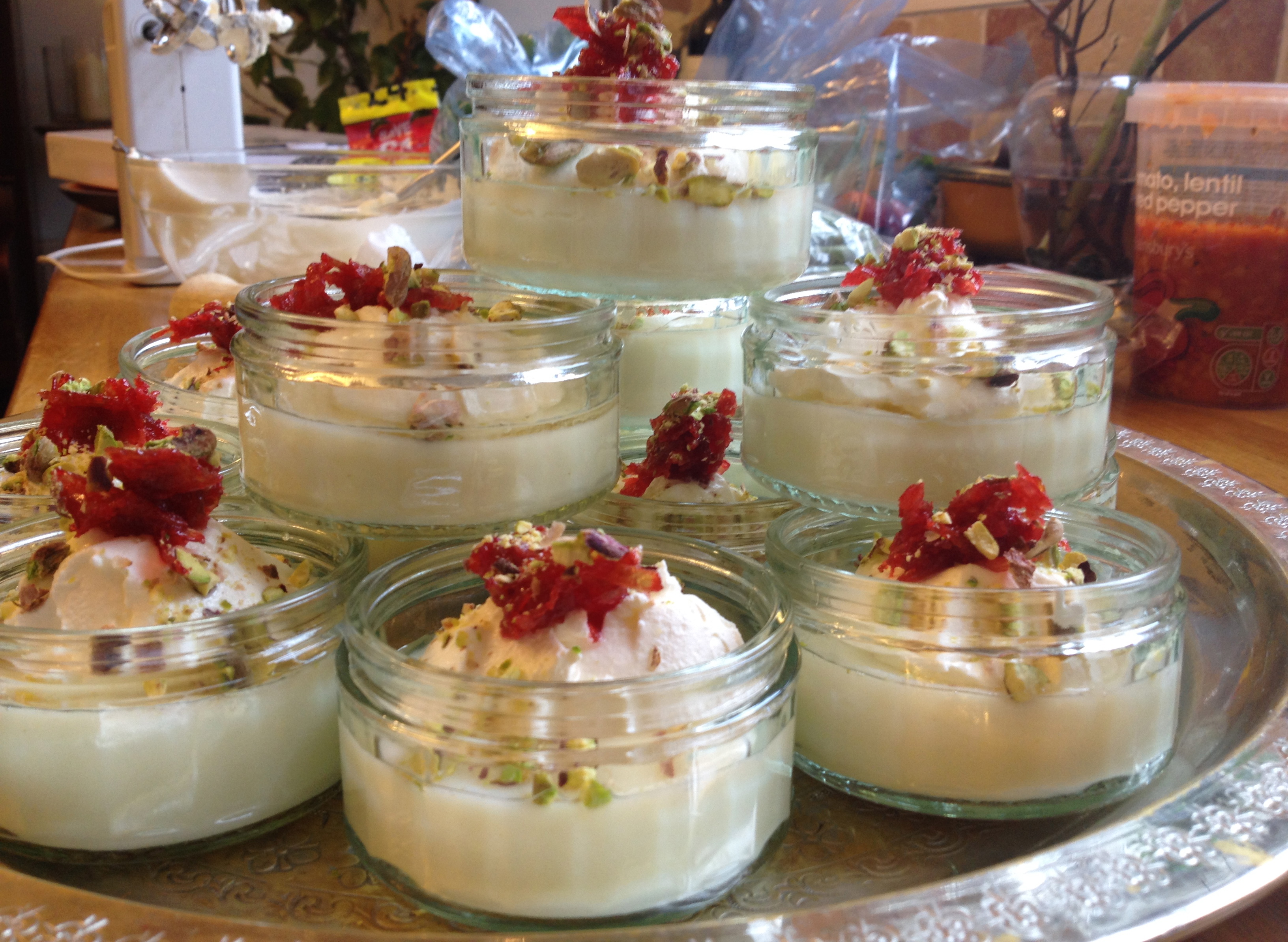 I will provide recipes for all those delights later. But now I want to give my version of a pudding that I have been making a lot recently — Layali Loubnan or Lebanese Nights. It’s just as delicious and addictive as the others. I never actually made this when I lived in Lebanon. It was my sister who finally taught me, saying it was the most refreshing of summer puddings. And she was right…