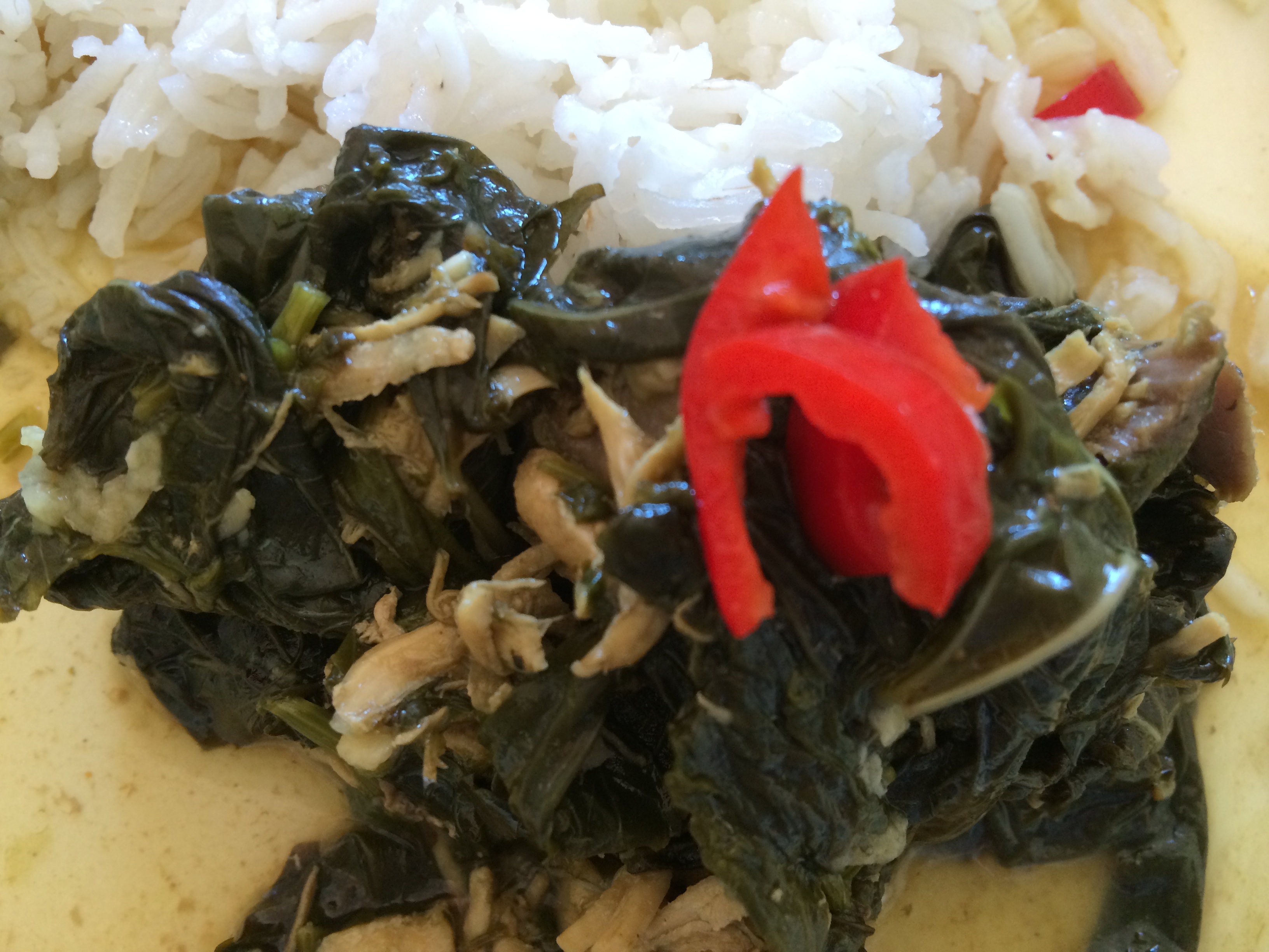 - Just before serving add the chicken and the lamb shanks to the Mulukhia