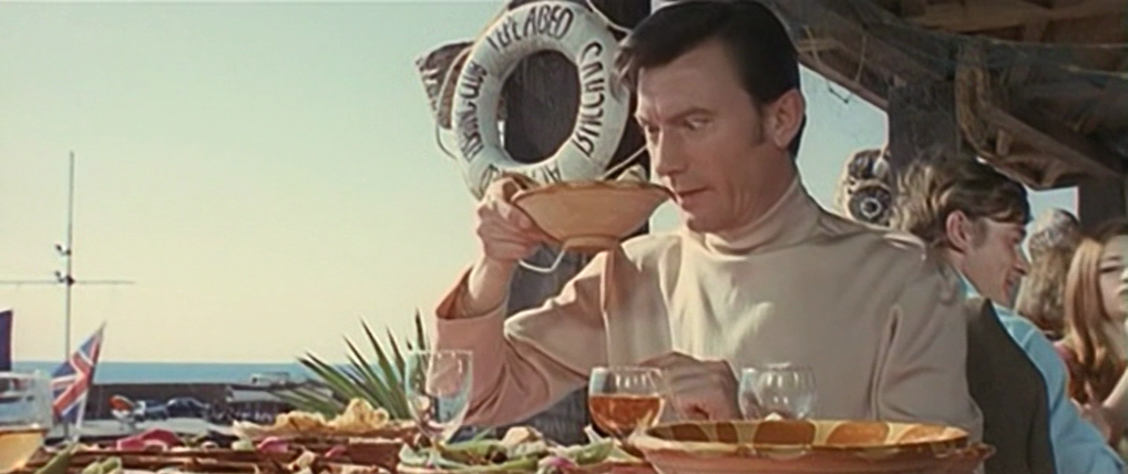 vlcsnap-2014-04-20-16h33m09s0 A white e-type snakes through Beirut… Ann Margret at the wheel… vlcsnap-2014-04-29-21h23m15s238David Hemmings and Richard Attenborough take a jeep up into the mountains above Jubail to plan their light as gossamer caper to defraud a bank using only Attenborough’s dodgy Arab accent and Hemmings’ not yet used up golden boy glow from Blow Up…vlcsnap-2014-04-29-21h23m49s66 vlcsnap-2014-04-20-16h31m34s63vlcsnap-2014-04-20-16h30m44s89    At Pepe’s Fishing Club in Byblos, a legendary hangout for the stars in the 1960s, Laurence Harvey’s mind is clearly boggled by the concept of the Lebanese mezze… while Ann Margret smiles knowingly as fishing boats jig in the tiny harbour… vlcsnap-2014-04-20-16h14m14s166