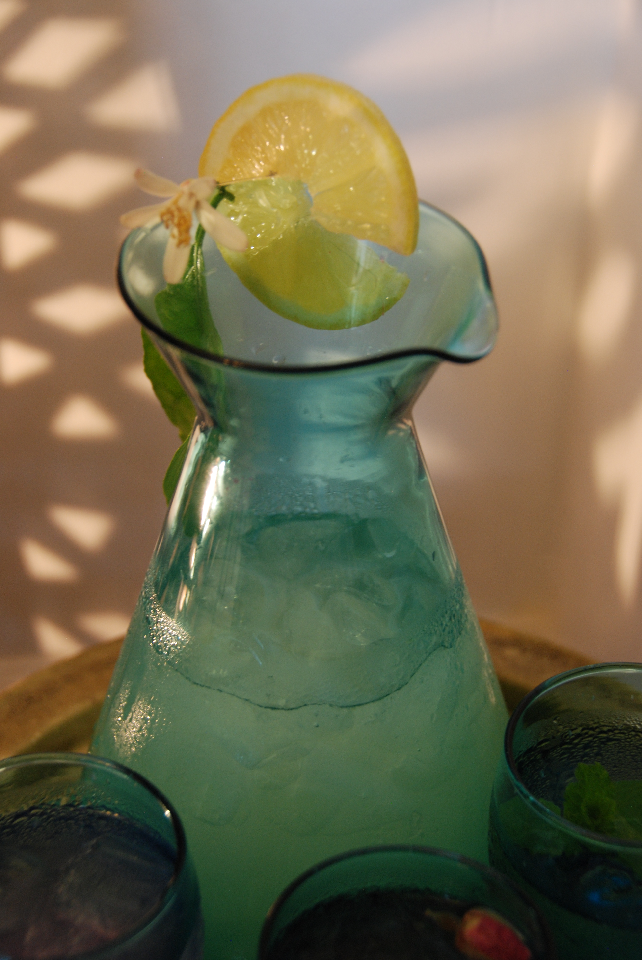 But this year, it looks like we might be lucky. One of the trees in my garden is already flowering, with buds growing on several branches. So, in honour of this — and in hope as well — I am going to give a little recipe for Lebanese lemonade here. I’ve been drinking it the last couple of days as the sun plays hide and seek. I’ve experimented with all sort of ways of enhancing its flavour — mint, orange blossom, pomegranate, rose syrup. Of course, you can add a touch of arak, too, if you want to make it alcoholic, but still keep it Lebanese. Some of my more conservative Muslim friends and relatives may not be so keen on that. Just as they will find this coming Ramadan right smack in the middle of summer a real trial. Imagine how hard it is to avoid drinking when the sun has been burning down at more than thirty degrees for the whole day and still hasn’t gone down — and somewhere not too far away, you can hear the chinking of jugs and glasses as neighbours treat themselves to an icy lemonade that has been growing in fragrance and richness for hours as the ingredients – the pomegranate, orange blossom and essence of roses – bed down more closely in an irresistible mixture of flavours and scents that , if you were feeling charitable, you might suggest was once the ideal in Lebanon with all its various sects and ethnicities. Who needs alcohol when you already have something so intoxicating…