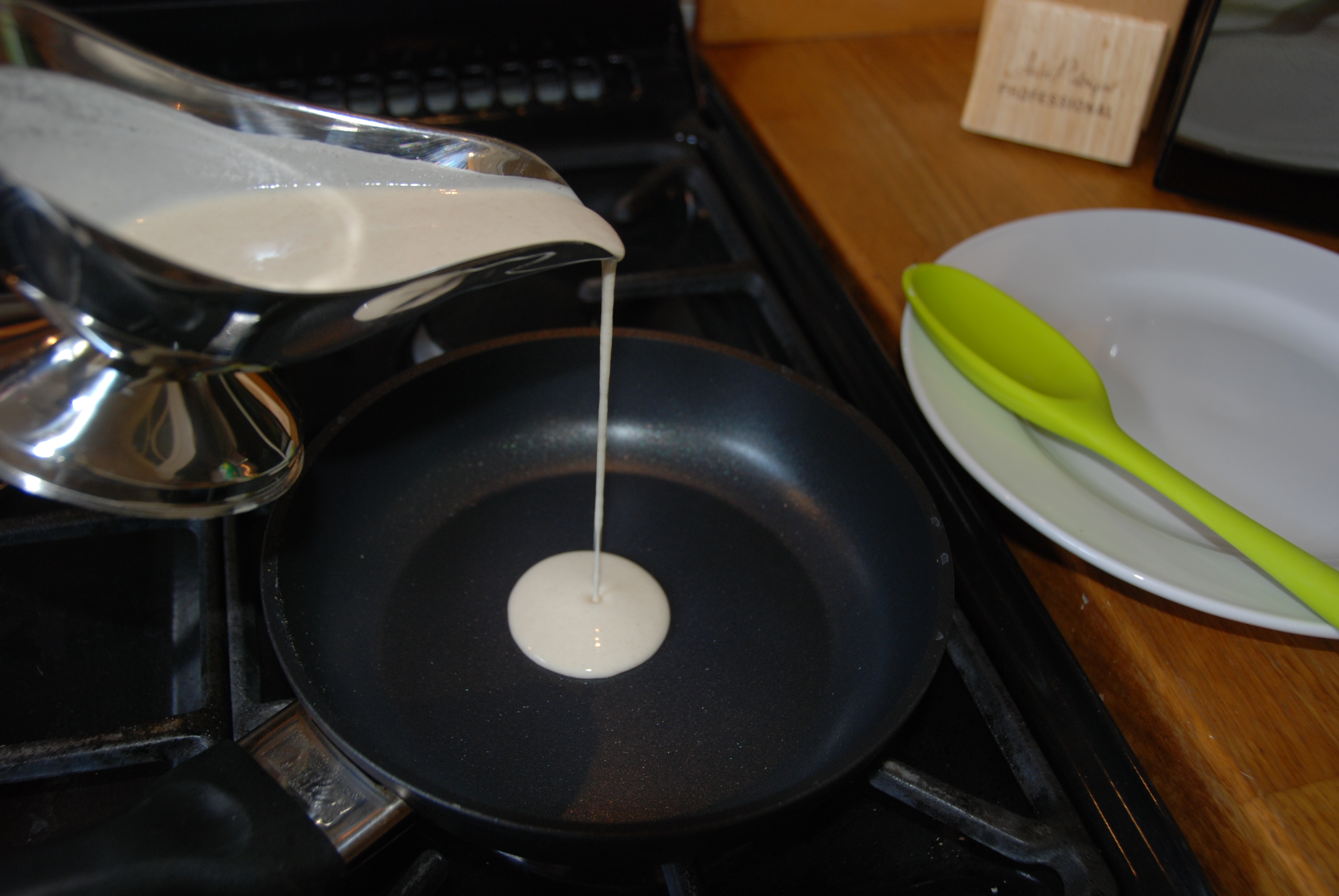 - Use a large non stick pan with a thick bottom to cook the atayef