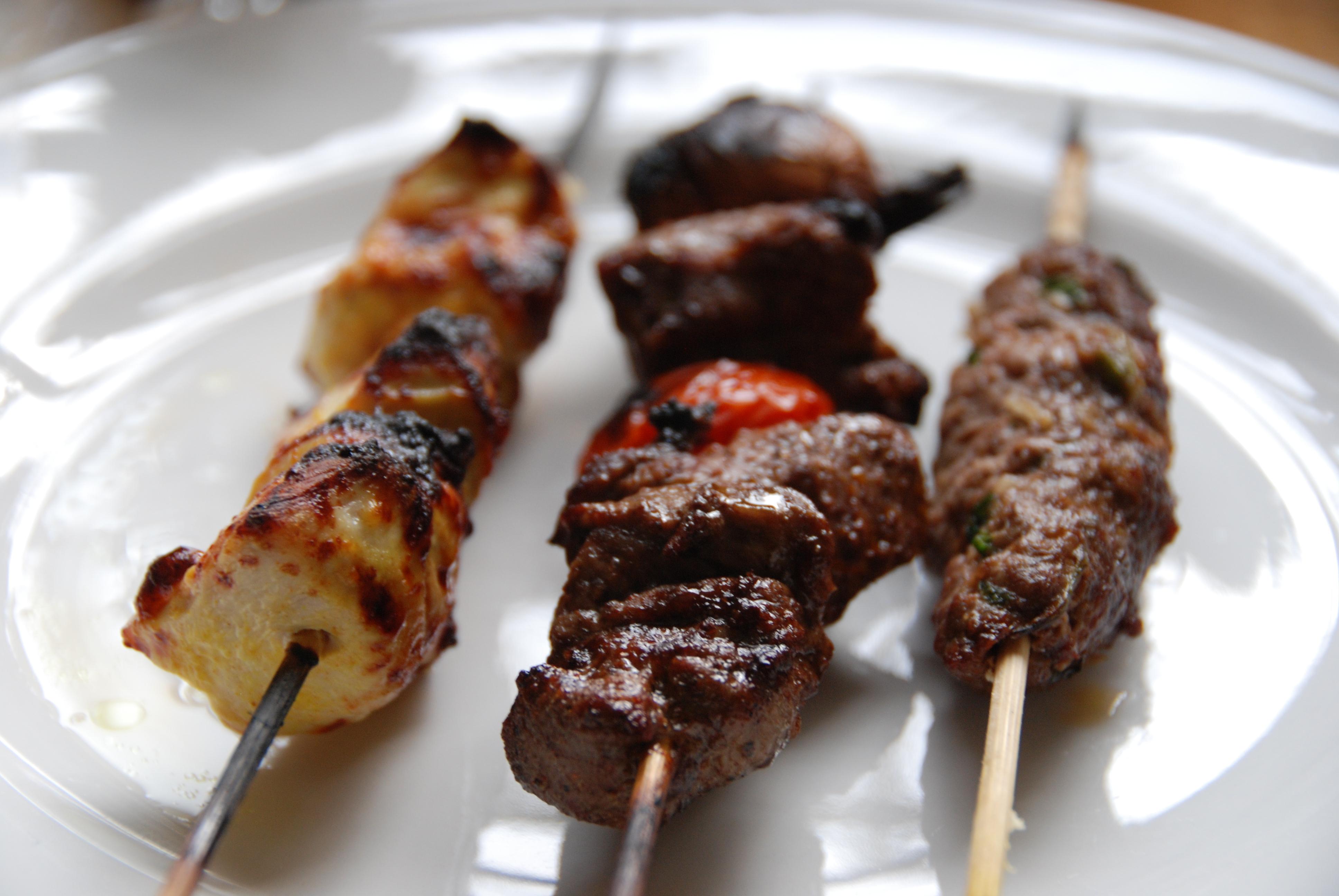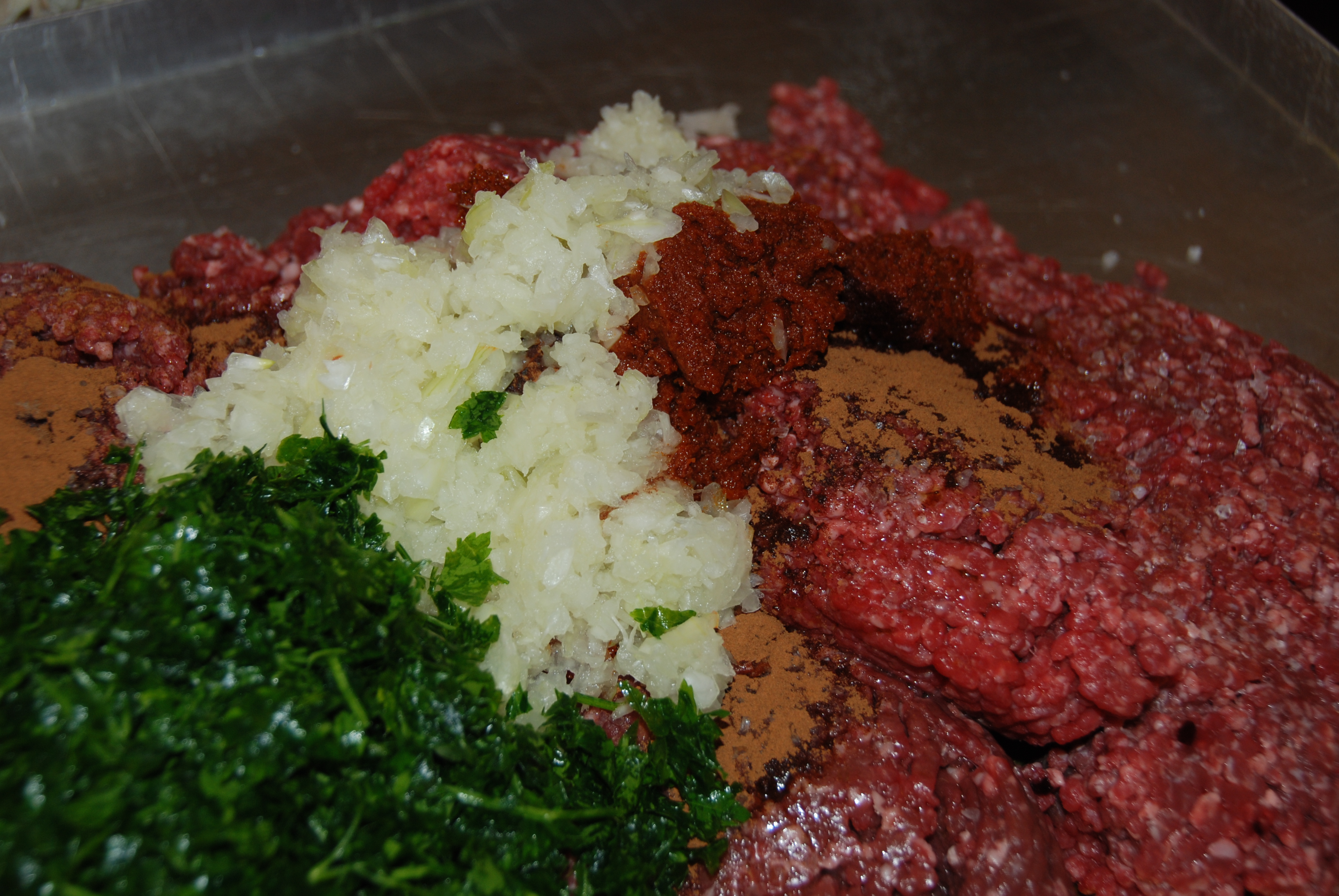 It’s interesting watching the English watching her. Is it art? Is it ok to watch every movement of her body or is that verging on the prurient? You can see the questions on the faces. Fortunately, it’s nearly always resolved when she pulls someone up to dance — then the focus is less explicit and it’s more about having an embarrassingly good time, which the English know how to do very well. To go with all of this, of course, a feast is needed. Fakhid al riz — a recipe I have already given here — is perfect. A whole sheep would be best. But if nothing else, a Lebanese barbecue works just fine. I’ve done the shish taouk already. There are two other main parts of the barbecue — lamb mashwe and kofta mashwe. This is the recipe for kofta mashwe.