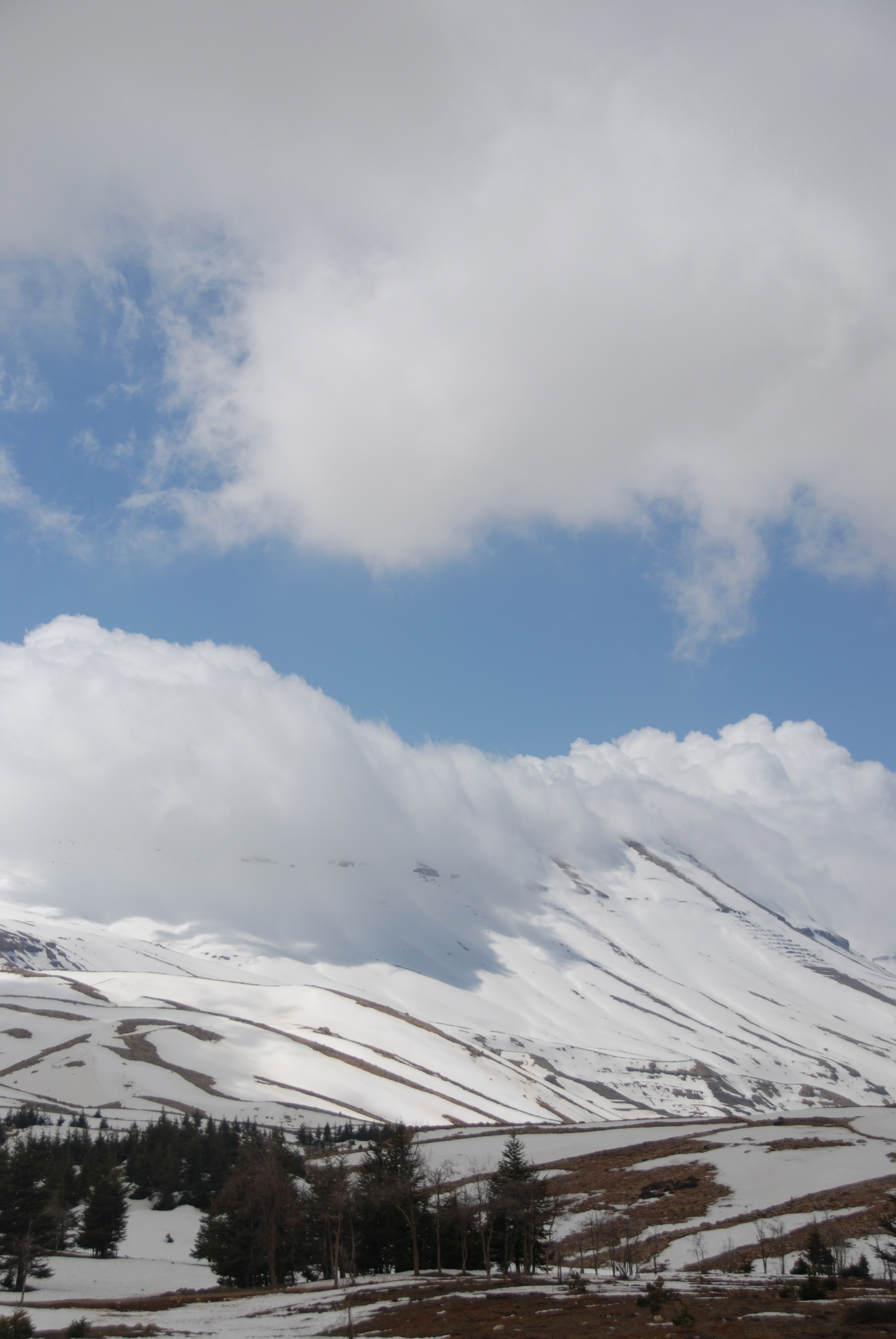 The last time I was up that high was a couple of years ago. We were just on a level with where the last grove of apparently original Lebanese cedars can be found. We stayed in a mountain lodge and were plunged into deep winter overnight. In the morning when we woke up, the road back down, which at one point narrows so that there are sheer drops on either side, seemed impassable. It wasn’t just the thick snow; there was also a deep fog that brought visibility down to zero. My husband and children begged to stay, but I didn’t want to be stuck for days up there and knew we still had just a chance of driving down before the next snowfall. We navigated the road with my older daughter walking in front, telling me where the next bend was. If we’d missed it, we would have plunged straight down — a possibility that had my younger daughter and my husband holding their heads in their hands in the back. It took about an hour to travel less than a mile. But we finally found ourselves beneath the fog and clouds again.