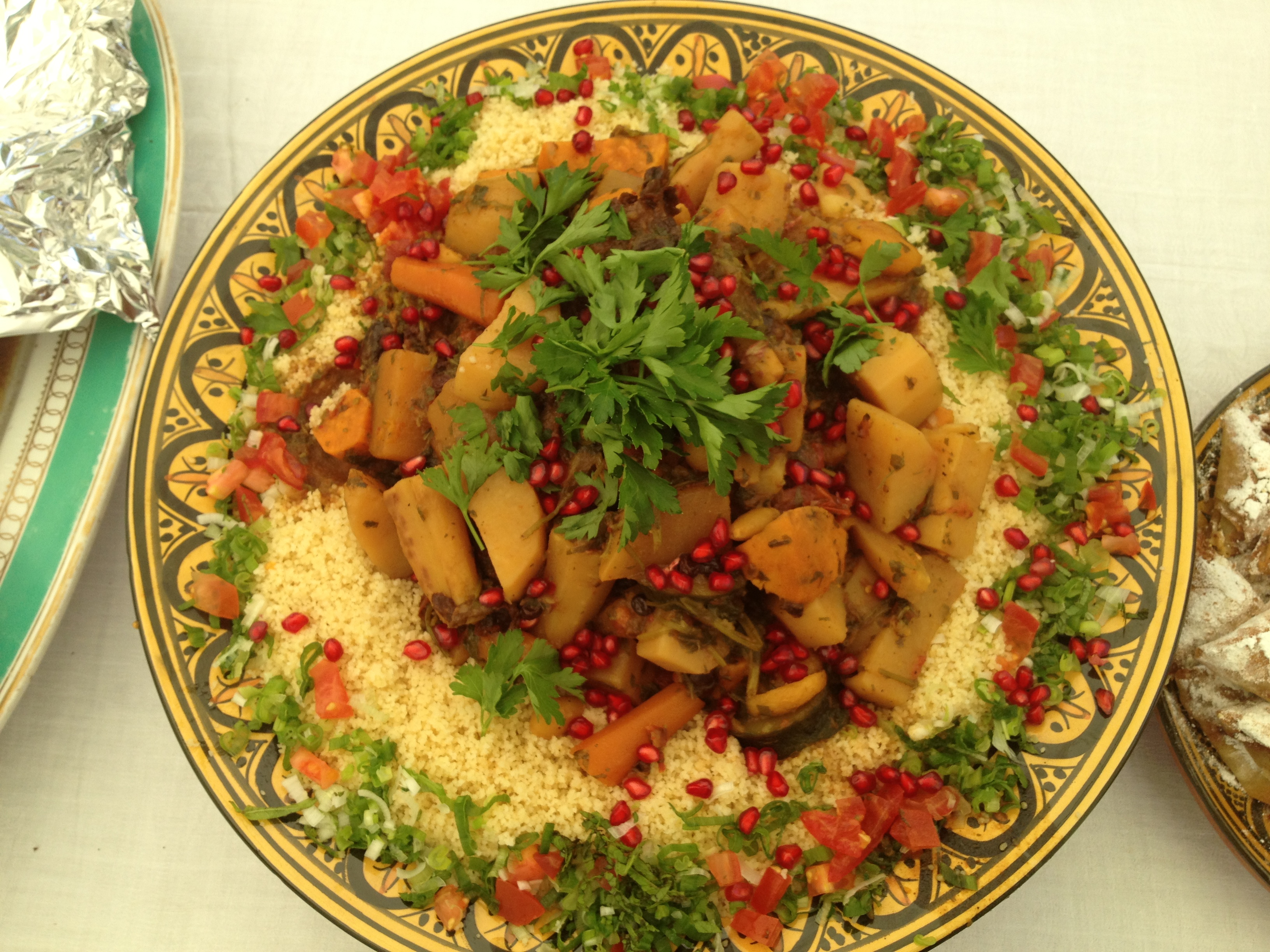 In Morocco, the kasbahs in the Atlas presiding over dry wadis and overgrown palm oases remain a waking dream of how we still imagine Arabia, even if it’s thousands of miles away from the real Arab heartland where the oldest relics you are likely to see are the burnt-out remains of super cars on highways that stretch from nowhere to nowhere. I feel as much a stranger in Morocco or Oman — even Egypt — as any non-Arab. I can’t even do haggling properly — paying full price in a souk in Fez or hiring a camel by the Pyramids. I am trying not to become a stranger in or to my own country. But I feel less a part of it every time I go home. I think I miss the restrictions and dangers that defined Beirut when I was growing up there. It almost feels wrong that it is so free and easy to go wherever you want. But I’m not selfish — I fervently hope that no other generation there will have to watch the floor fall in slow motion away from them and descend into the darkness my generation experienced. The one thing I suppose I do have to hold on to both from there and from the Arab countries I have since visited are the tastes and recipes. For this, I owe Morocco a great deal in particular. It took me time both to appreciate the country and its cuisine, but now I revel in its richness — so different from what we have in Lebanon. Tagines have become a staple of mine both when I am entertaining at home and when I am catering professionally — sometimes for hundreds of people. One of the pleasures of my business is not just to see people enjoying what I have made, but also to rescue some of it at the end of the event and wolf it down gleefully in the coming days as the sweet and savoury sauces and other ingredients sink more deeply into each other. That’s something I wish we had been able to experience when we were stuck year after year in our own shut off and highly dramatic, but minuscule world — within the immensity of the Middle East but barely part of it. This is the recipe for a vegetarian tagine — don’t be put off but there are a lot of ingredients…