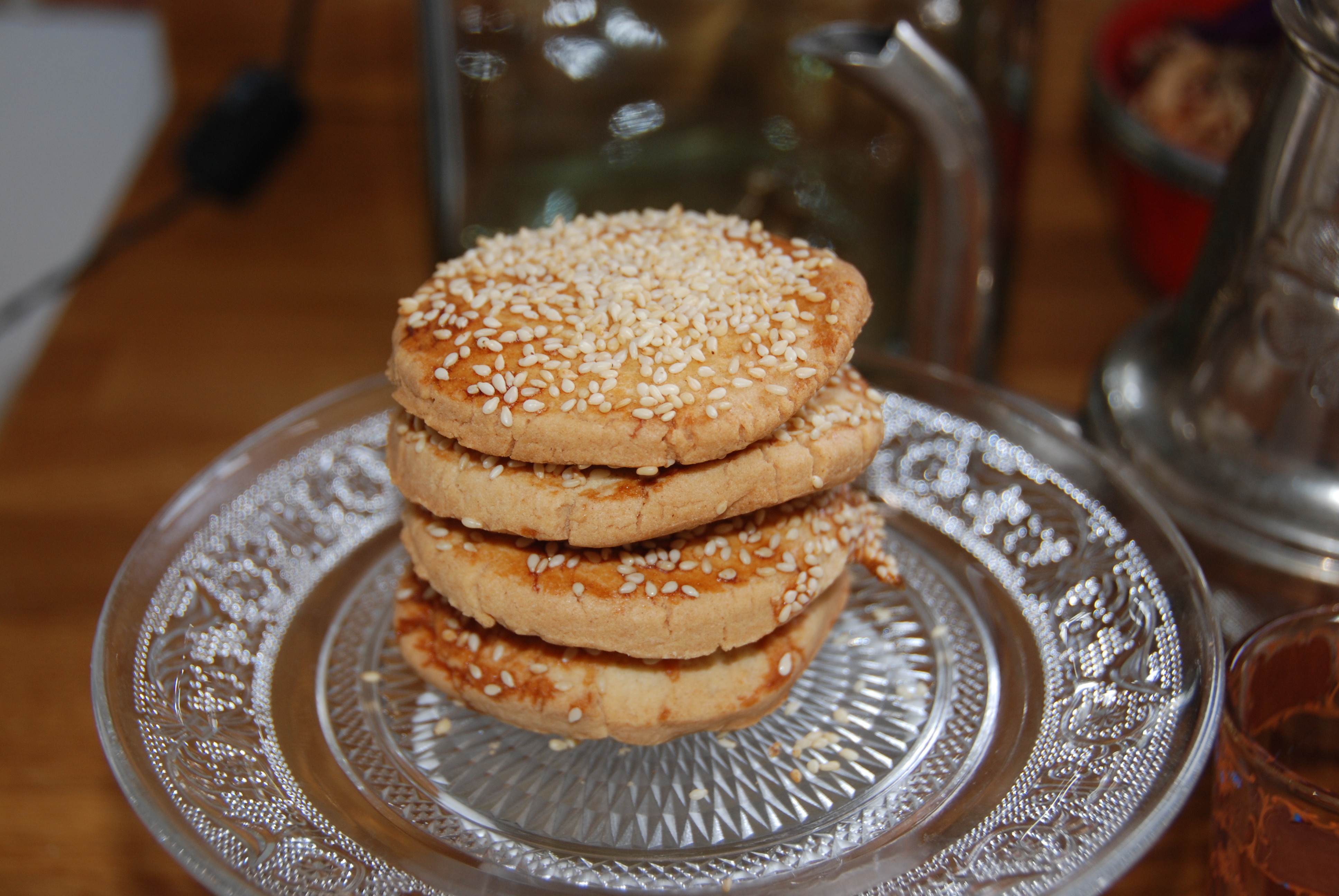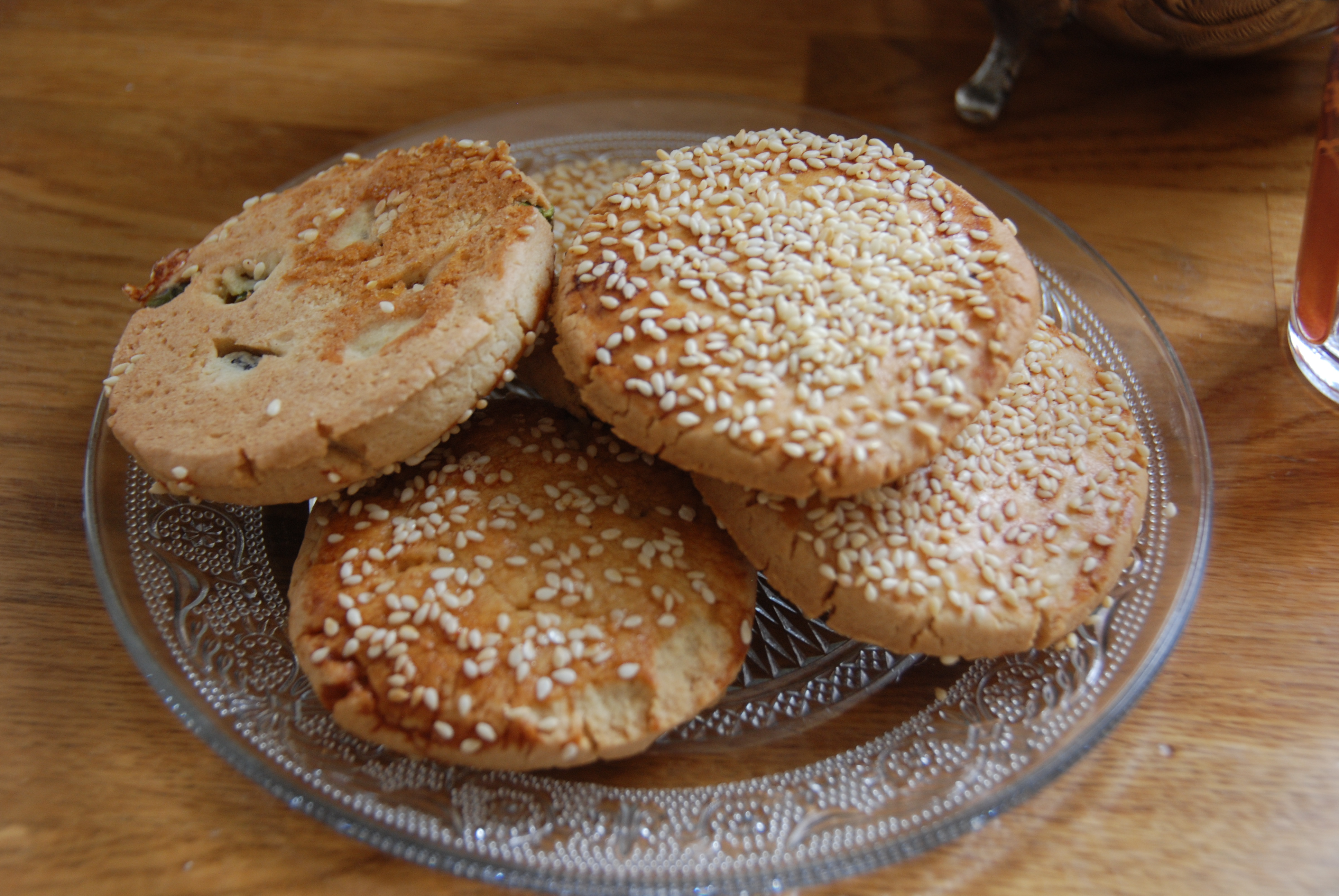 It didn’t seem a very wise choice. I would see them walking on the street above mine as they made their way home in the afternoon — past what had been the French embassy and into an area that was not, as far as I knew, particularly safe. There was a cinema there — still with a poster for an Alain Delon film that was the last due to be shown before the war broke out. There was a very good patisserie, too. But it was too far for me to go — too uncertain, dangerous. Brian didn’t seem worried. He loved the Ottoman villa and described the ornate garden with a little fish pond. We all had our own concerns; fundamental ones that would have been the same at any time in Beirut, to do with our families and the freedom or lack of it that we had to negotiate as if we were each our own little mideast envoys — and with about as much success. I never really understood why Brian and the others were there, but I didn’t really think about it that much, as it all seemed so far removed from my own very limited experience, anyway. So, we joked and teased each other. I learnt next to no English, but enjoyed the experience anyway. We all used to sit in the canteen at AUB and laugh at anything that might be seen as serious — at ourselves and our strange lives as much as anything else. It was a big contrast between those silly but fun gatherings when we were probably meant to be learning something — but weren’t — and the shuttered off existence up on the sixth floor that I went back to every night. We never met outside. It would have been nice to. All the recipes I was making would have been worth inviting everyone round to have tea. But that was out of the question. What I didn’t know at the time and what I didn’t expect — as we all took everything lightly — was that the whole thing would turn tragic. In one of our teasing sessions in class — probably in the canteen or outside as usual — I remember I told Brian that I would have him kidnapped if he was hard on us and actually expected us to start studying. I am sure he laughed in the way he had, with his whole body caught up and a big flash of his teeth through his beard. Not much later, I deeply regretted saying it, thinking that it would be the last thing he remembered me for if he ever thought of me, in the long, terrible years to come. That part of the story deserves its own post. For now, here is a recipe for biscuits with pistachio and sesame for that tea I never had. They’re called barazik and are a Syrian speciality.