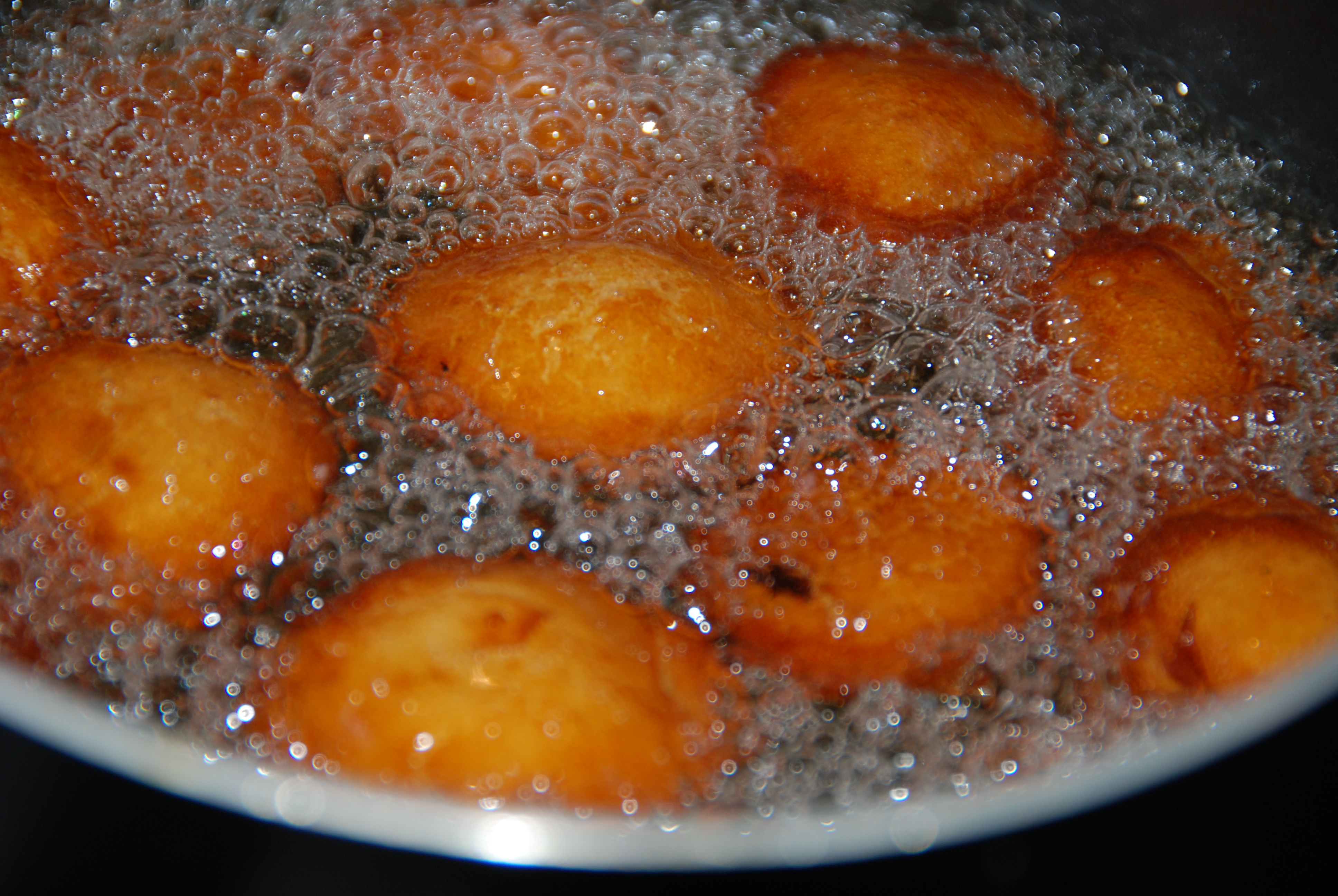 Place the batter in a piping bag with a normal nozzle and squeeze it out into the hot oil in the shape of small balls