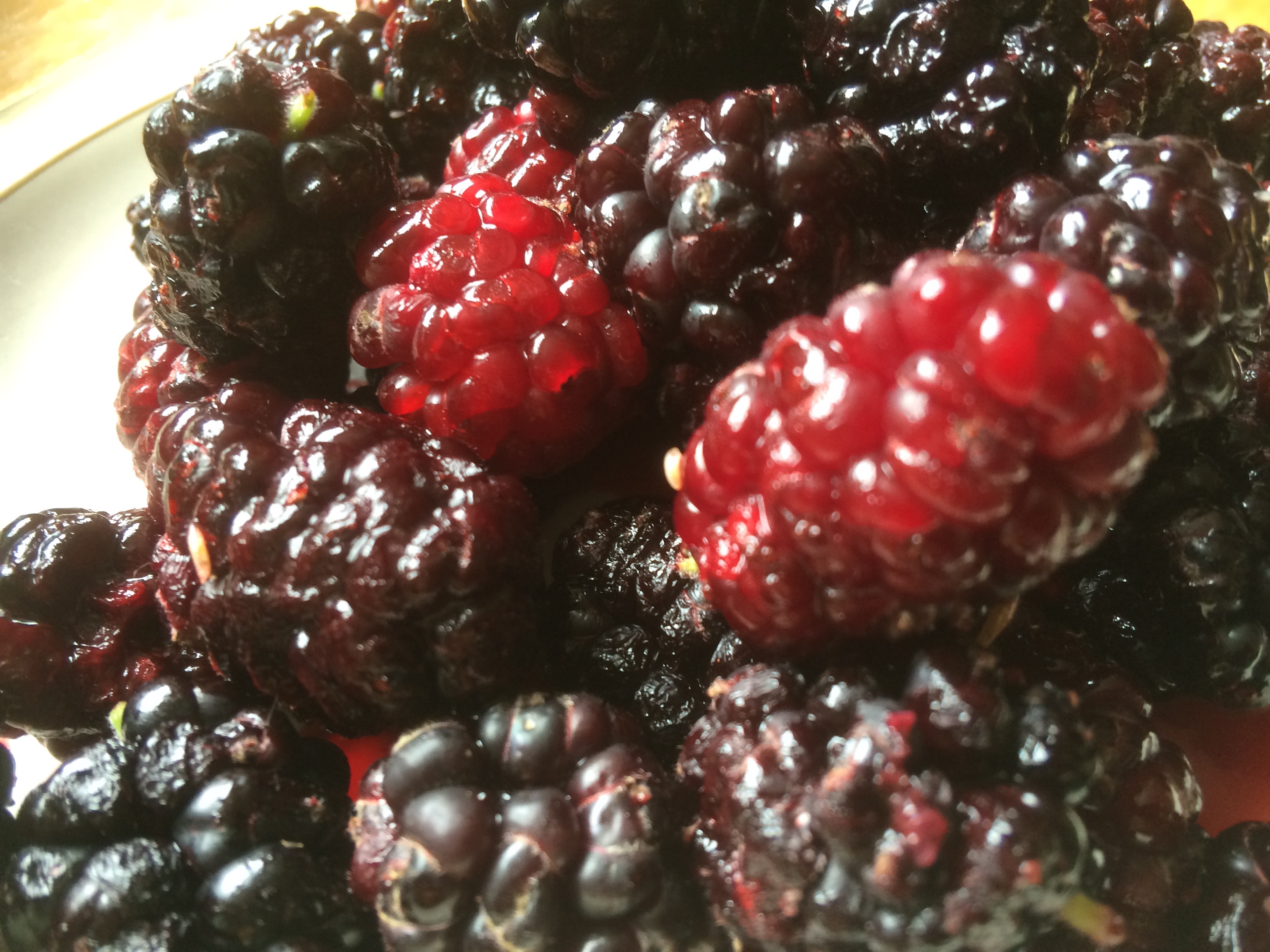 The summer may almost be past now here in London. But that means it’s getting to be a good time to go foraging again. The mulberry tree next to the walled garden in the meadow behind our house looks like it won’t be providing anything like the fruit it once did. I remember my excitement when I first discovered it — forgotten in a lost clearing of overgrown nettles and unruly shrubs. But a friend told me about another tree in a particularly incongruous place — a car park in one of the towns that’s become — a little unfairly — a byword for suburban chavdom. So, we made the trip to Staines. And there the tree was in all its unkempt and completely ignored glory. Maybe my life needs more excitement, but I felt a rush of pleasure when I saw it.