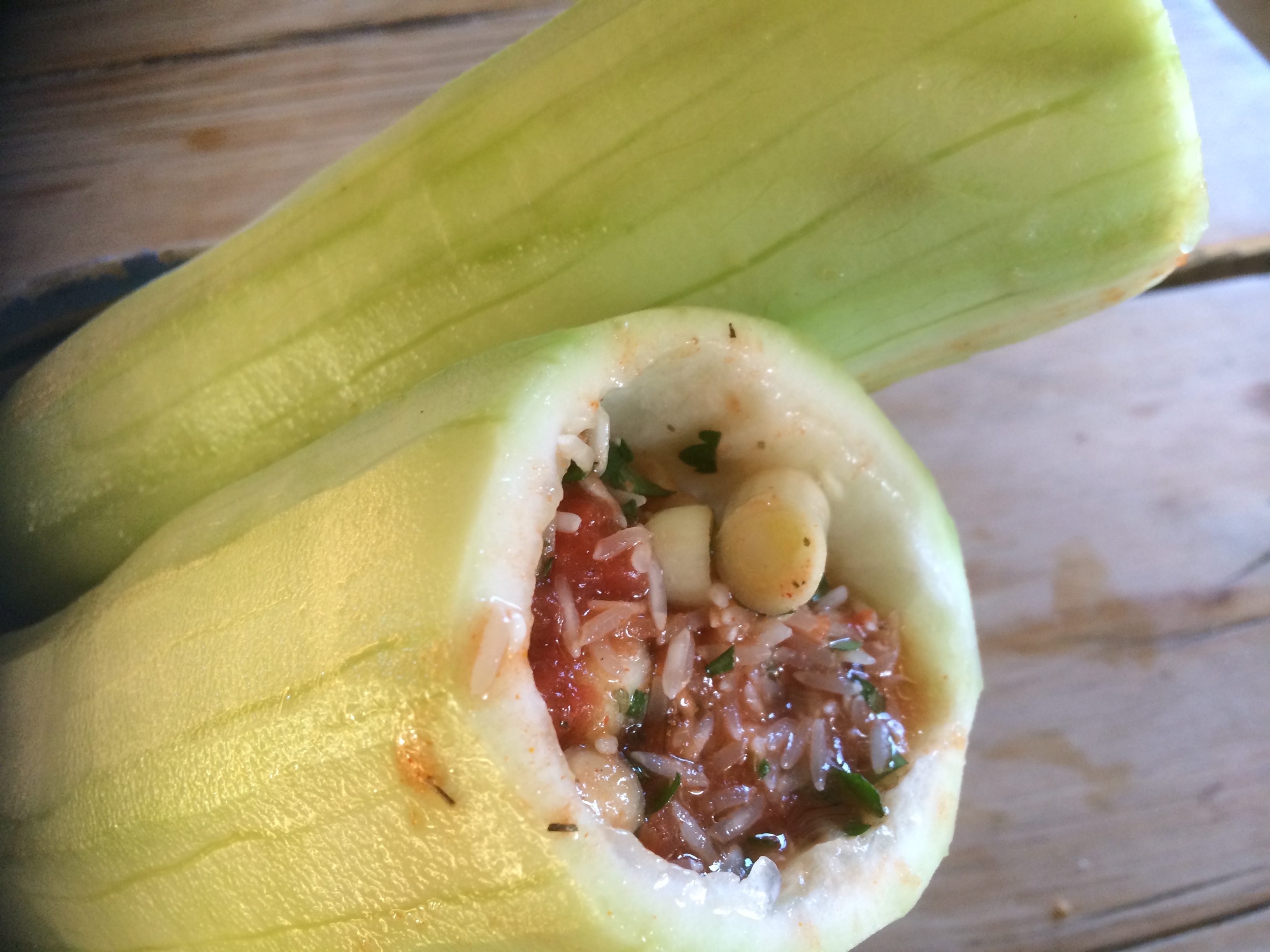 Core the vegetables, using an apple corer or a Lebanese mana’ara/courgette corer – this might be tricky the first time, but don’t worry practice makes perfect