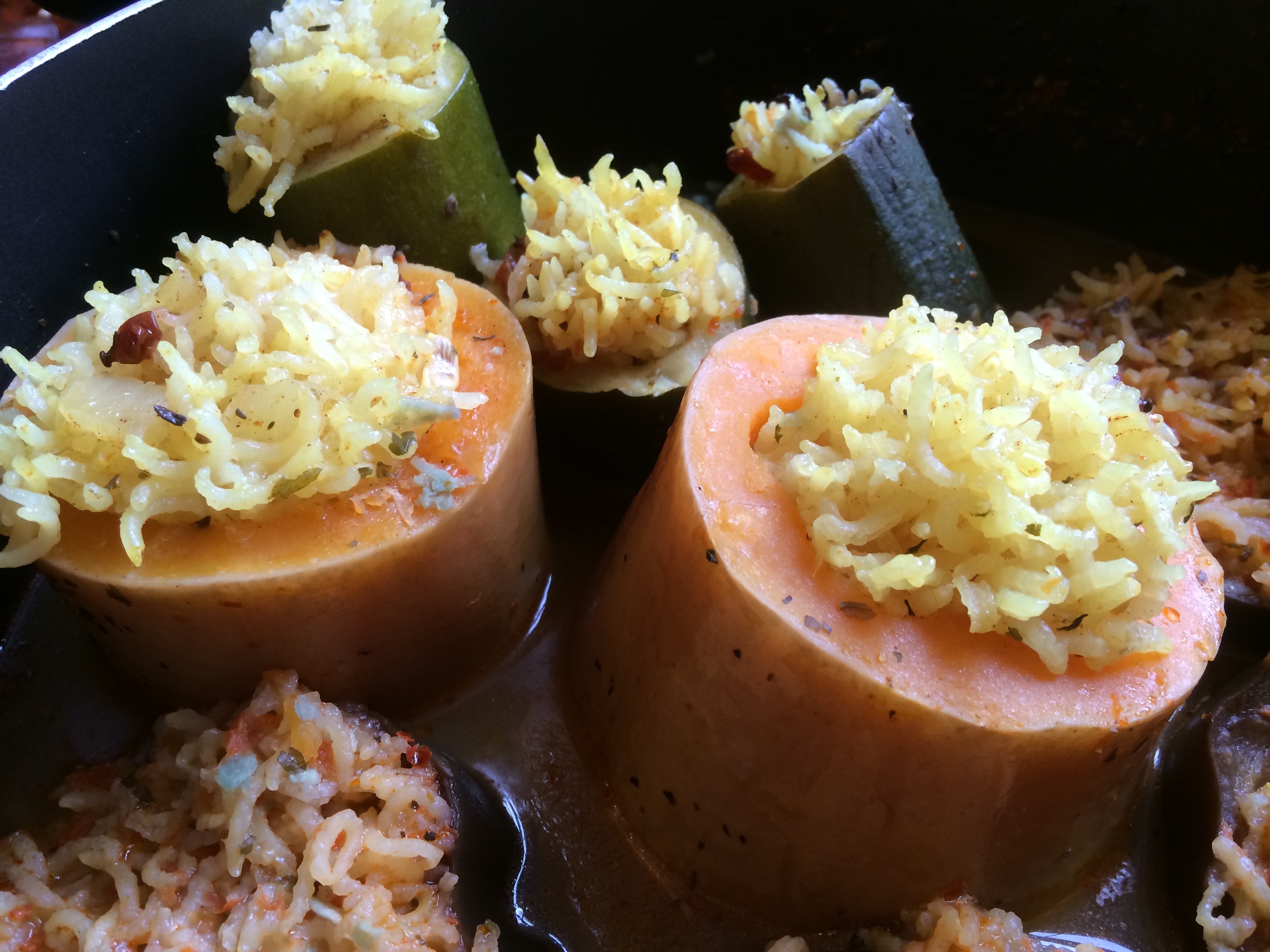 Once the sauce starts to boil reduce temperature and leave to cook for 30-35 minutes or until the rice is cooked and the vegetable outer skin is soft